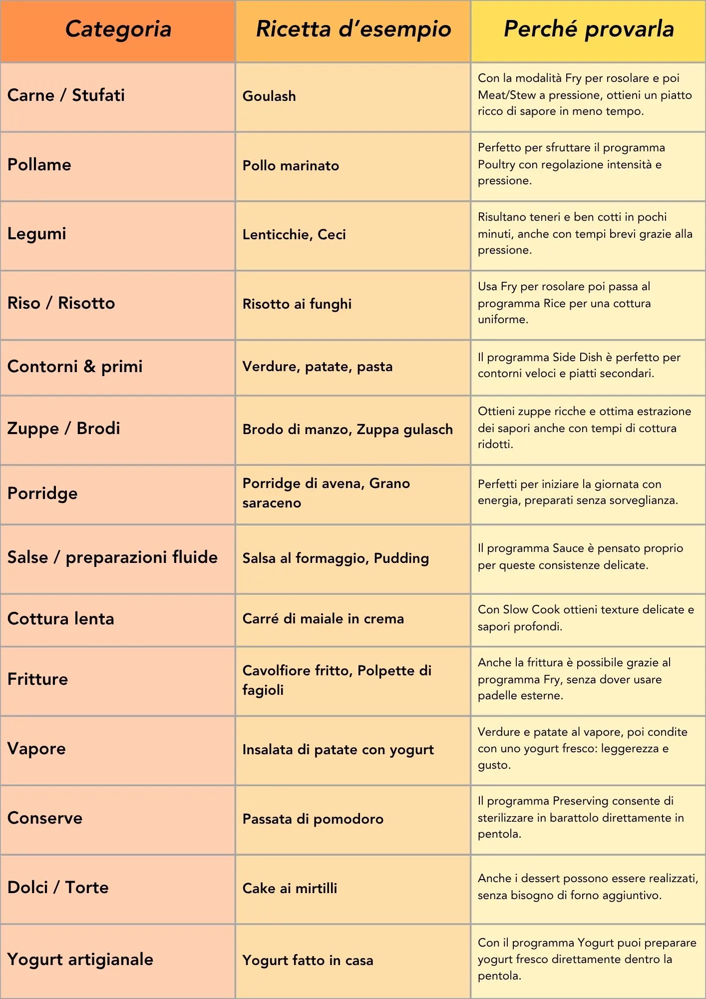 : non sempre serve la pressione, ad esempio per yogurt o salse scegli i programmi appositi.