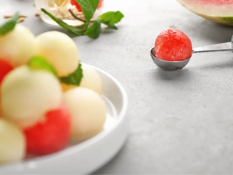 - Spiedini o macedonia: con uno scavino da frutta, crea piccole sfere di cocomero: saranno perfette per comporre spiedini colorati o arricchire una macedonia.