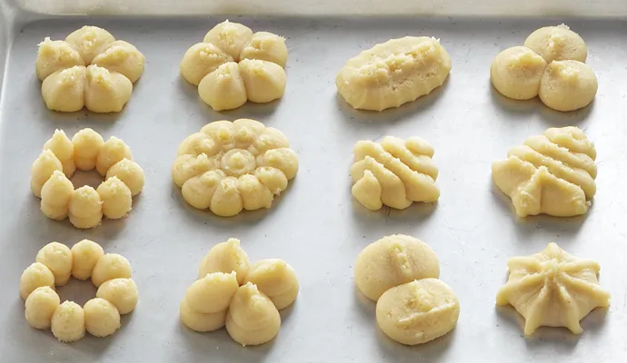 La sparabiscotti è dotata di diverse trafile, così potrai realizzare con un unico impasto tanti biscotti dalle forme differenti.