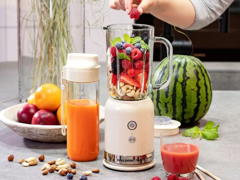 Dovrai solamente inserire tutti gli ingredienti all'interno del boccale del frullatore o nella bottiglia apposita, così risparmierai anche tempo e potrai gustare lo smoothie dove vorrai.